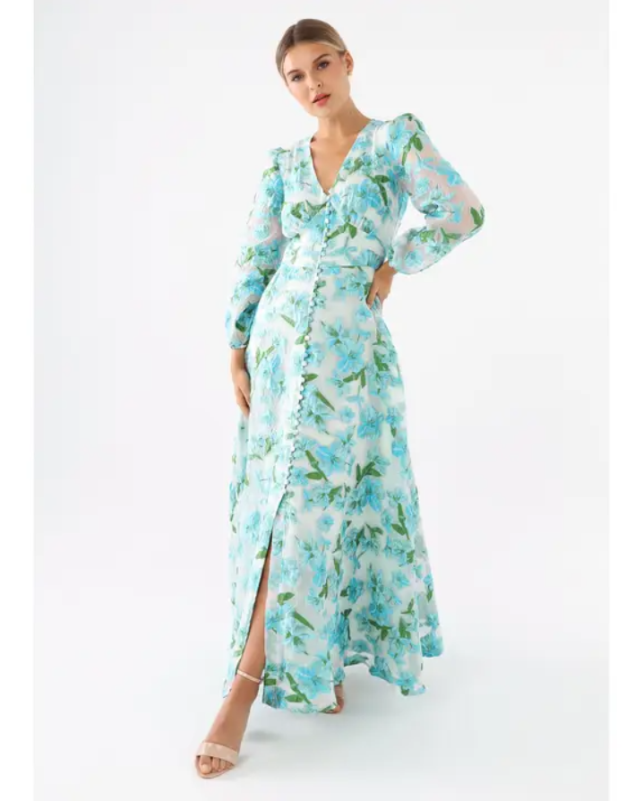 Flutter sleeve tiered maxi dress