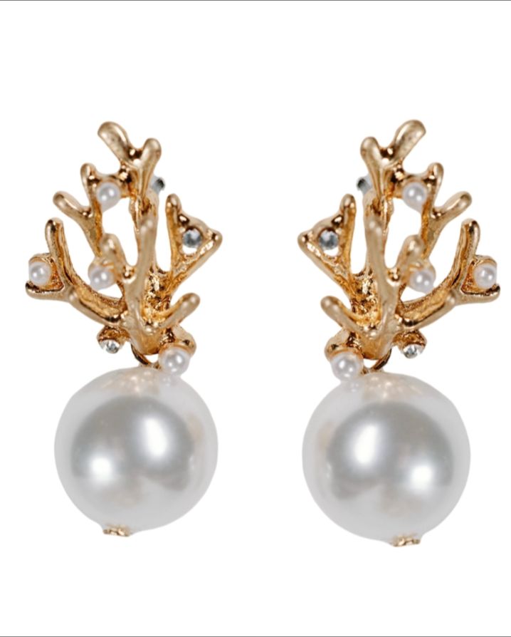 Pearl and gold coral statement earrings