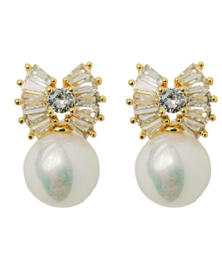 Pearl sparkle statement bow earrings