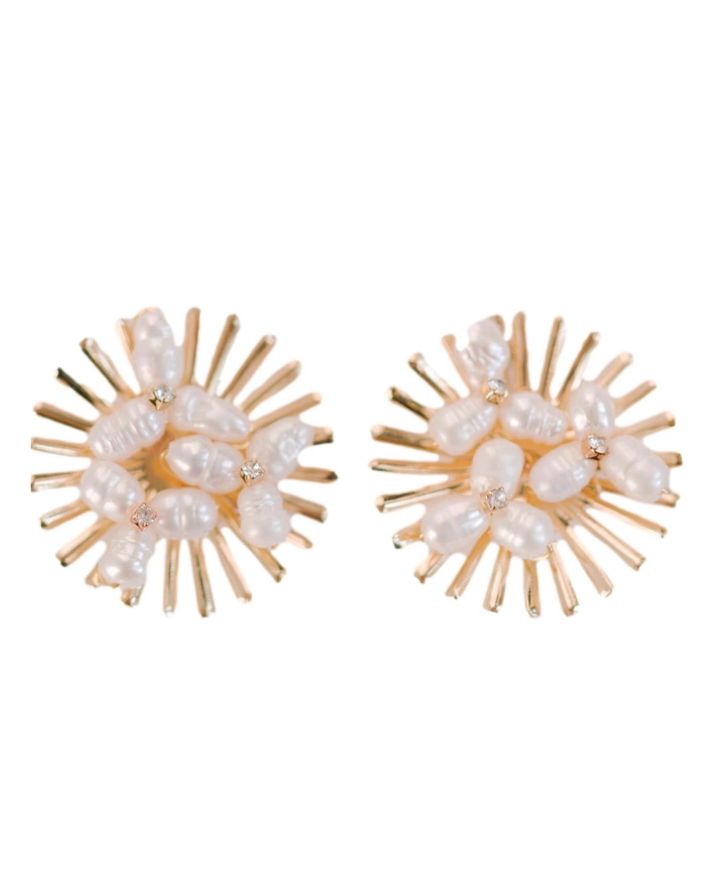 Sunburst pearl statement stud earrings