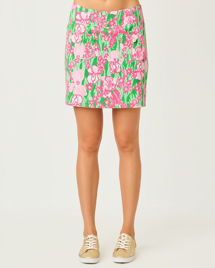 - UPF 50+ Luxletic® golf skort with pearl details and pockets on the front, back, and undershorts.